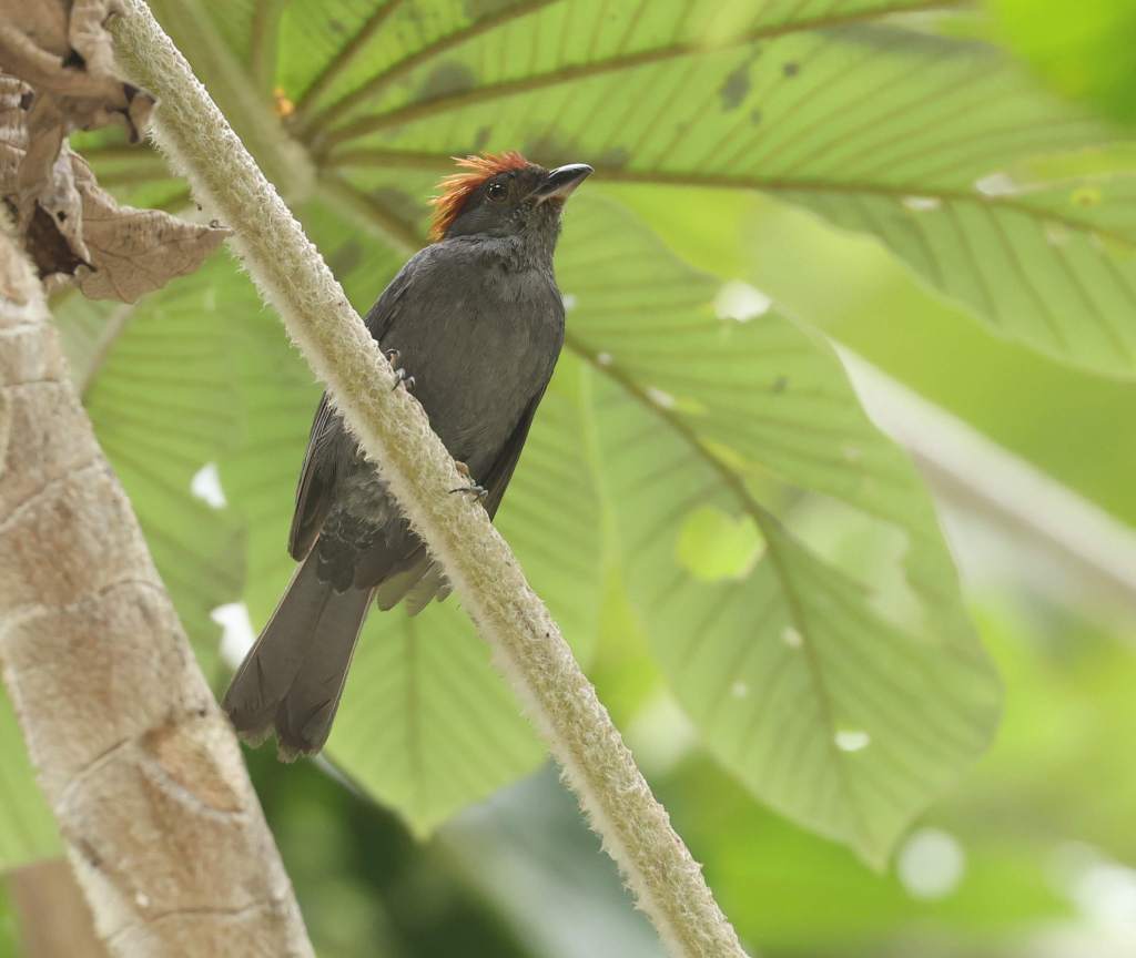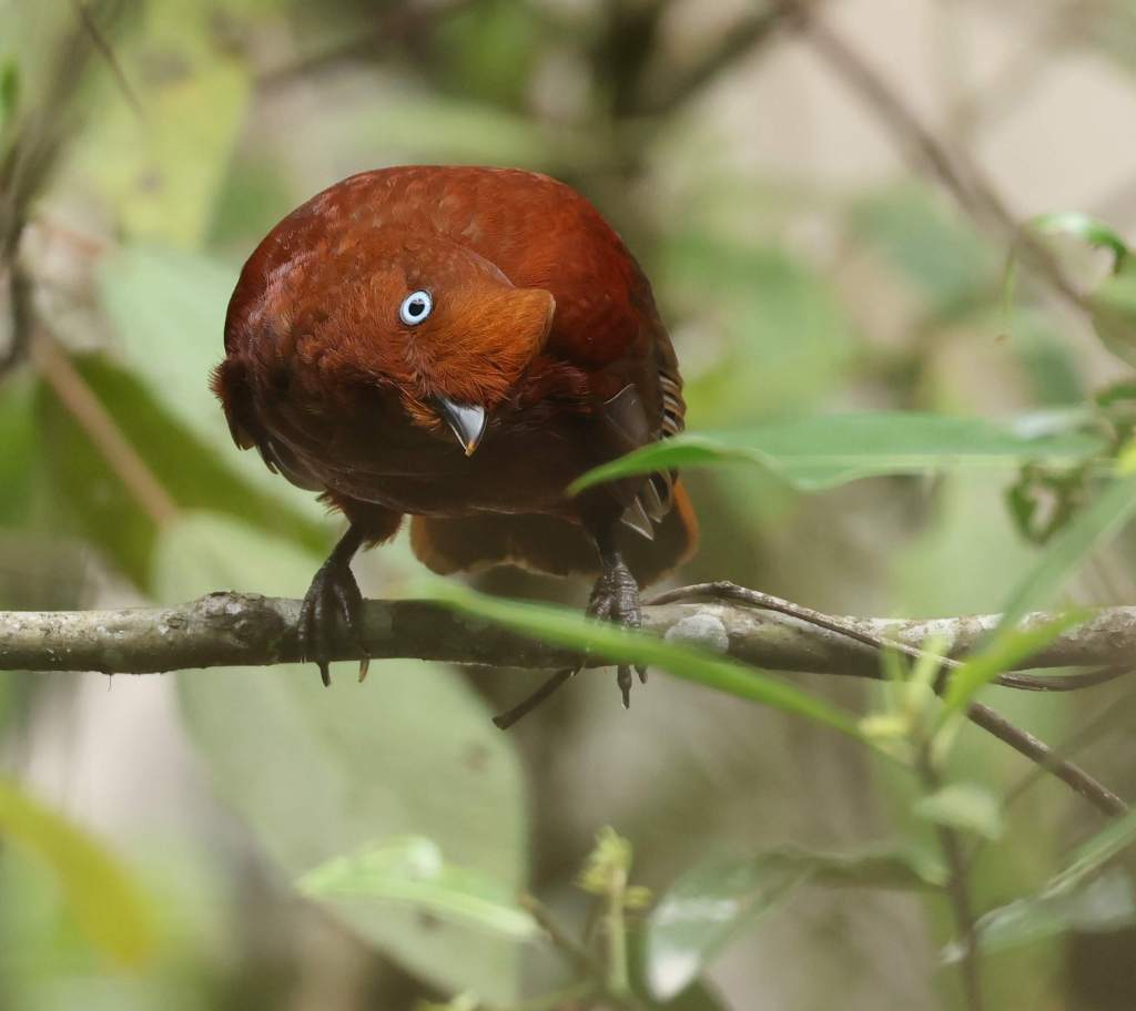 It really was a bit of a bird fest when mixed flocks passed through the rainforest, with a whole bunch of unpredictable appearances including Ocellated Piculet, Versicolored Barbet, Ashy-Headed Tyrannulet, Azara’s Spinetail, Blue Dacnis, Oleaginous Hemispingus and the incredibly punk-looking Slaty Tanager. Many of these weren’t really in good photographic proximity but even a short, distant glimpse was captivating. An icing on the cake was that around this time we also spotted a female Andean Cock-of-the-Rock close to the river; they are usually much less seen than the gaudy orange males.