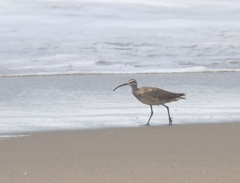 On the beach the waves looked quite inviting, and a squadron of Brown Pelicans cruised over them, while several dozen Hudsonian Whimbrels patrolled the tide line. These Whimbrels were recently split from Eurasian Whimbrel, meaning it made another lifer for us.