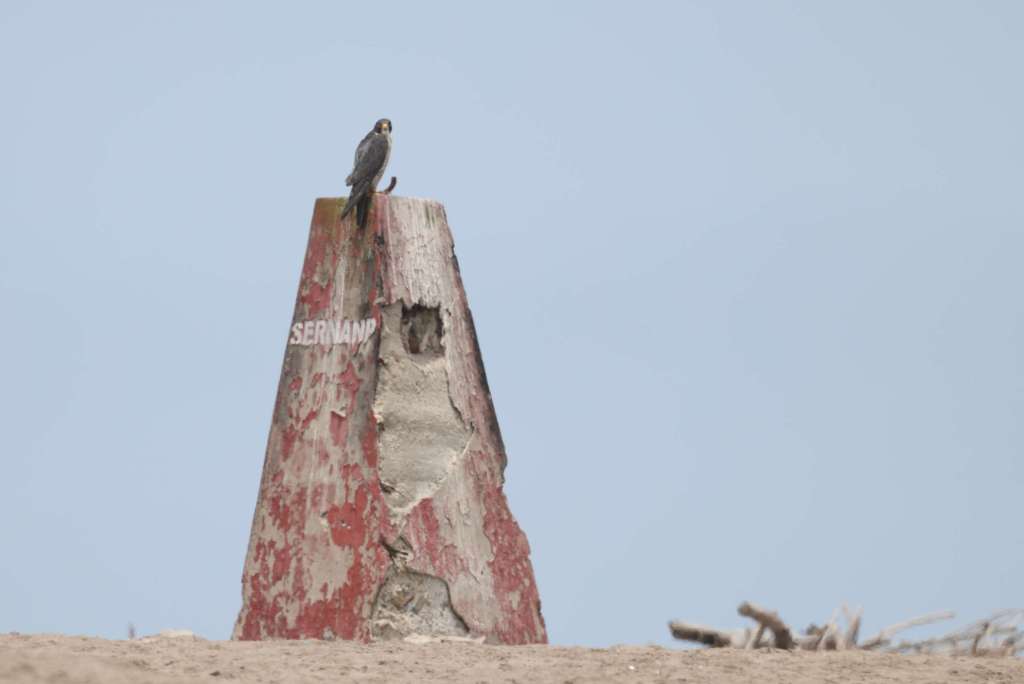 It was mid-morning by this point and getting quite warm. Away from the lagoon it was a case of hoping to see grassland birds or Yellow-Hooded Blackbird, and we did see a few Grassland Yellow-Finches, but mostly it was a bit of a slog along the sandy trail all the way round to the beach again. A bonus on nearing the beach was a Peregrine Falcon – always a thrill, as it is the world’s fastest animal – though it flew away before we could get close.