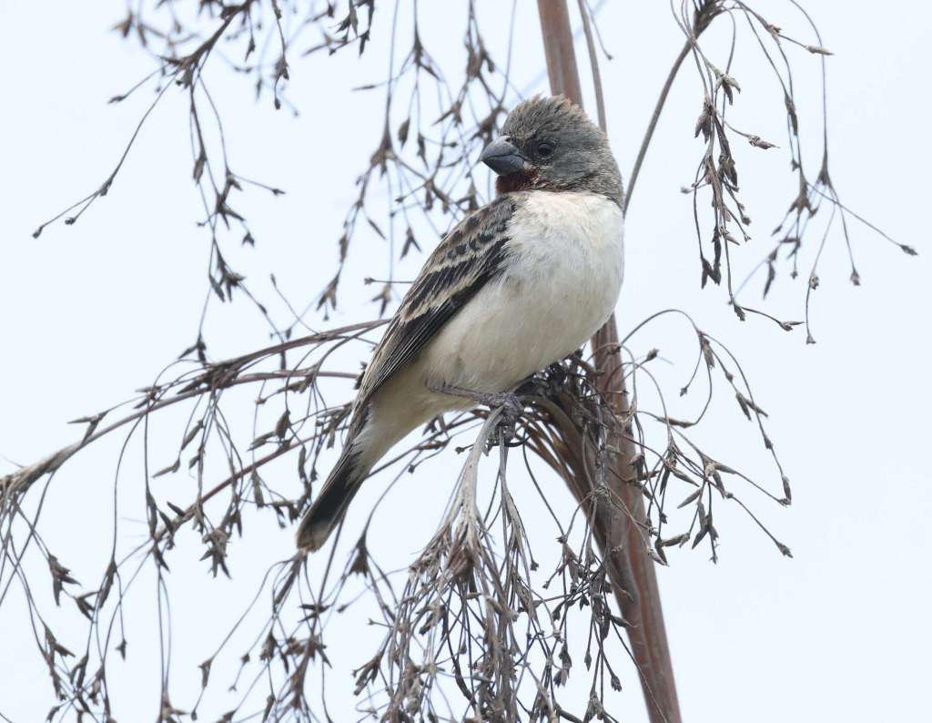At this lagoon Franklin’s Gulls were also in huge numbers (we thought at least 1200). We watched them wheel and dip from the wonderfully breezy bird hide (which disconcertingly had a few Black Vultures walking menacingly about on the roof), and we also saw four Great Grebes out on the water, including a youngster. A Many-Coloured Rush Tyrant hopped about on the water’s edge, and a Chestnut-throated Seedeater sat placidly not far away. It was a good way to end our long morning here after 3km of solid and unexpected walking.