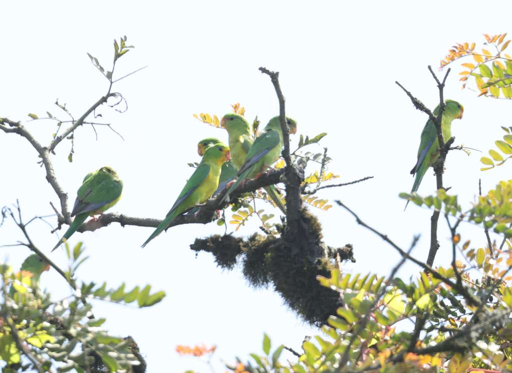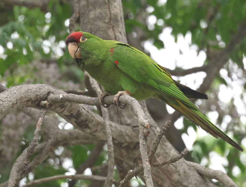 One of the identification challenges in this region is picking out parakeets. There are three similar species: Cordilleran Parakeet, Mitred Parakeet and Red-Masked Parakeet. While sometimes ID’ing is straightforward – you are supposed to look primarily at the amount and type of red on the bird’s head – other times left me wondering, particularly when I couldn’t get a good view of the top of the parakeet’s head in the higher branches.