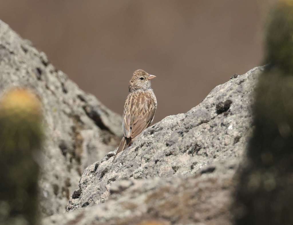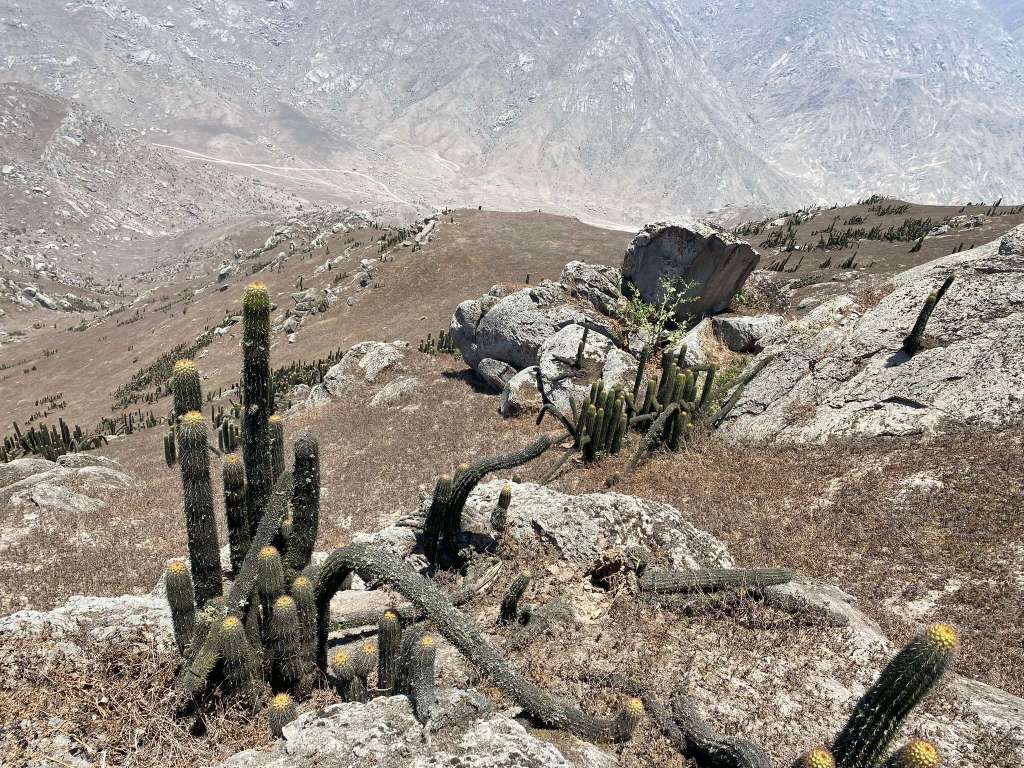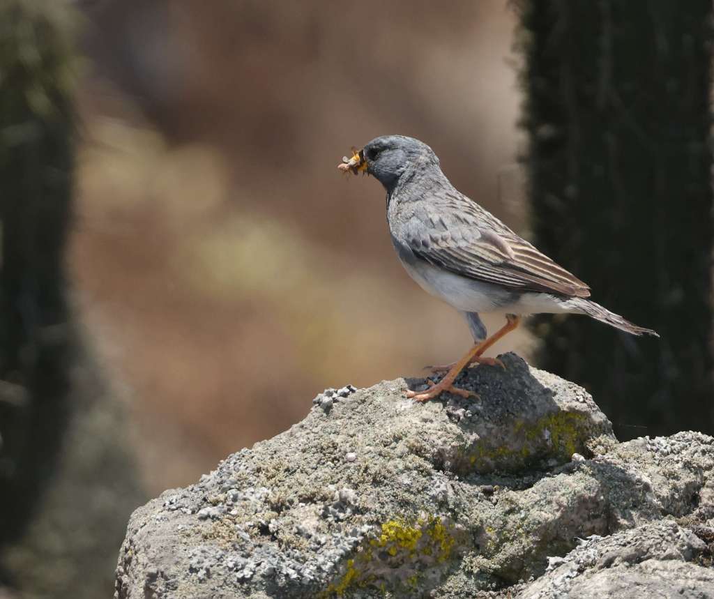 It’s not far to the top of the hill here but once the trail passes the peak, conditions become a lot drier – there are no more trees, but there are plenty of cactus. Here is the habitat of Peruvian Pipit, of which we saw 7, and lots of finches and finch-like birds: Black-Lored Yellowthroat and Raimondi’s Yellow-Finch, Band-Tailed Sierra Finch, and Thick-Billed and Greyish Miner.