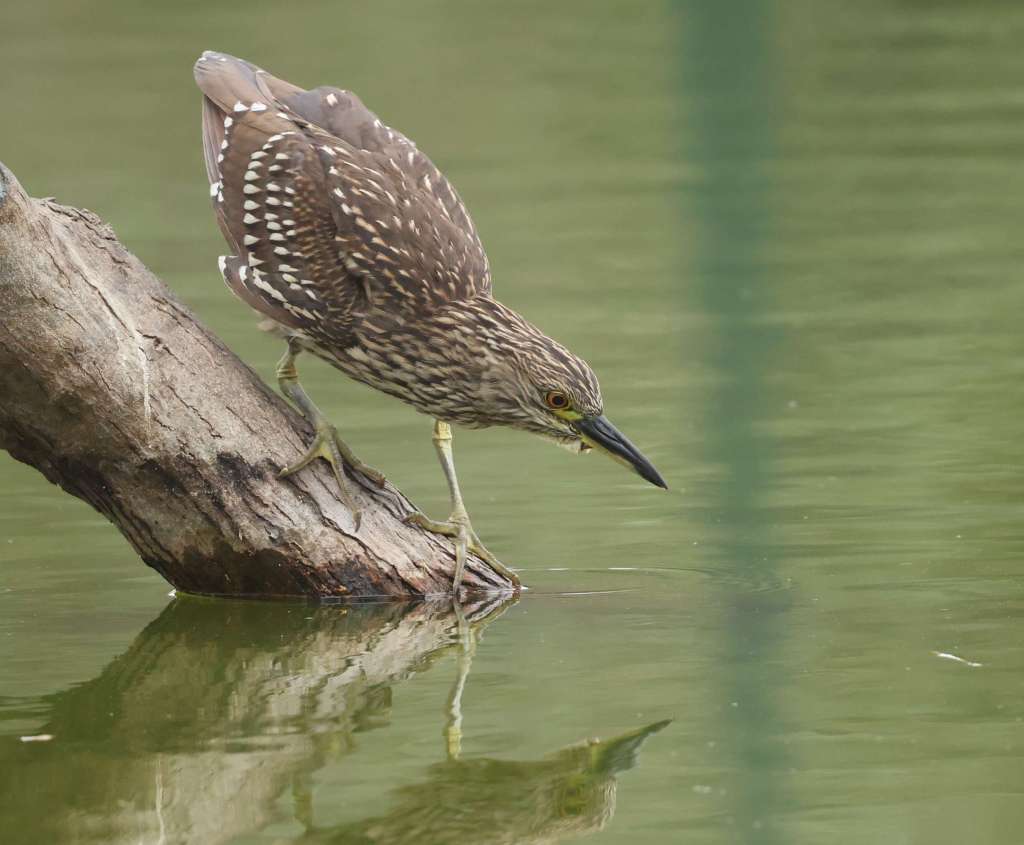 At this pond I saw several Black-Crowned Night Herons, nearly all of them juvenile. I watched the slow, deliberate hunting technique of one of them for quite a while, though I never saw it catch a fish.