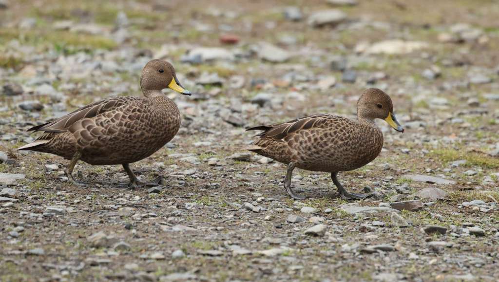 The Yellow-Billed Pintail has a South Georgia subspecies, which eats a large variety of foods including algae, shrimp, clams, snails, and are even sometimes seen with their heads gobbling inside seal carcasses with the giant-petrels. In this climate, I guess you can’t be too fussy.