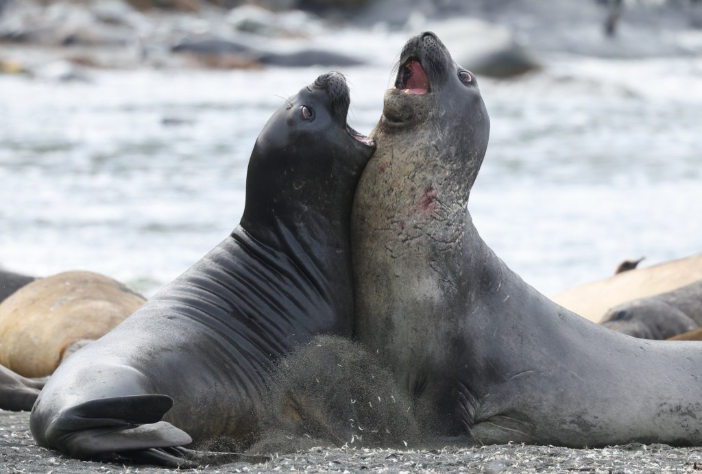 Sometimes the posturing turned into outright fighting – check out the scars on these seals’ throats.